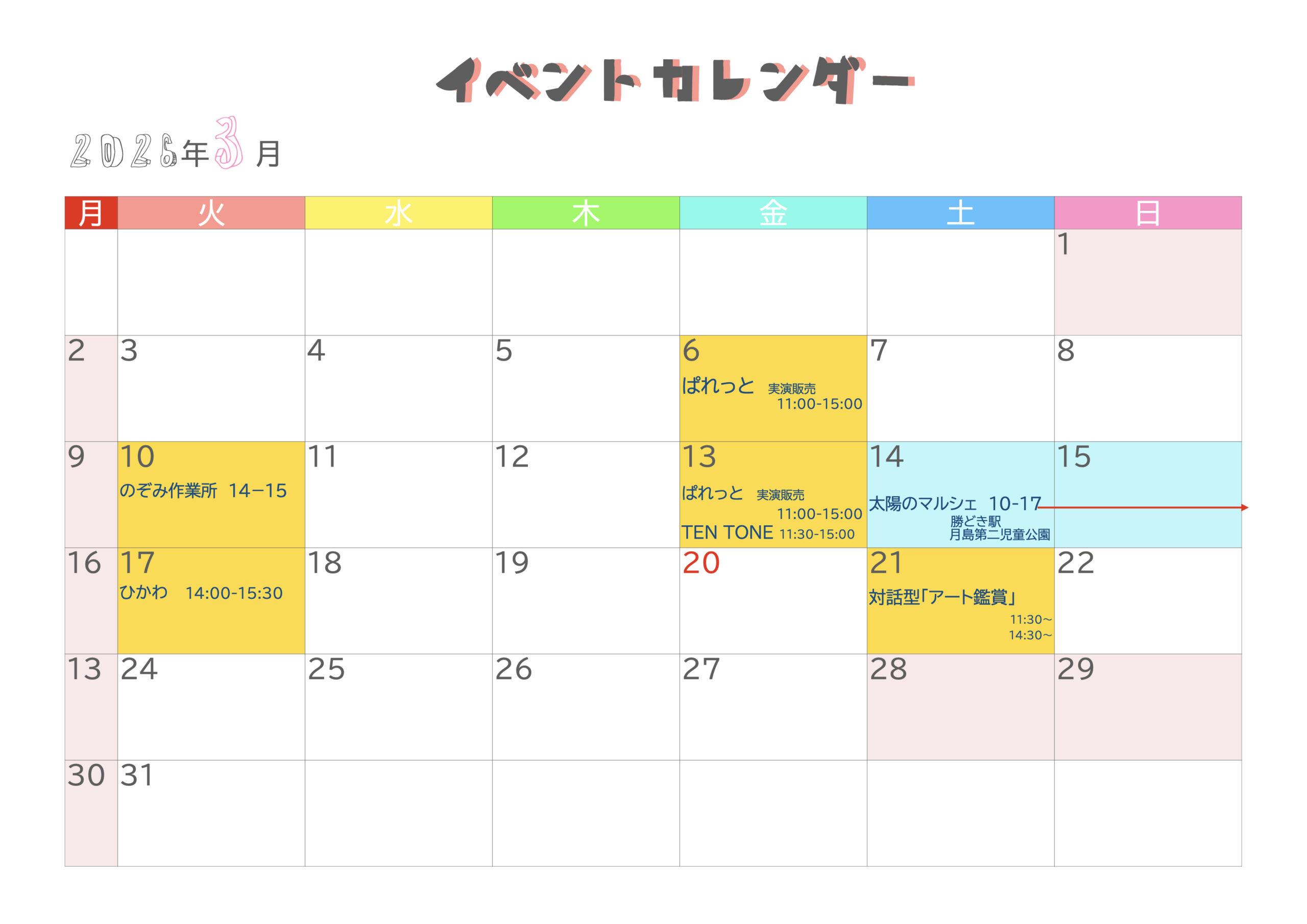 イベントカレンダー【3月】